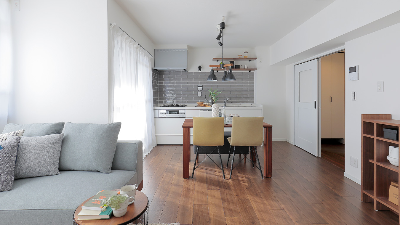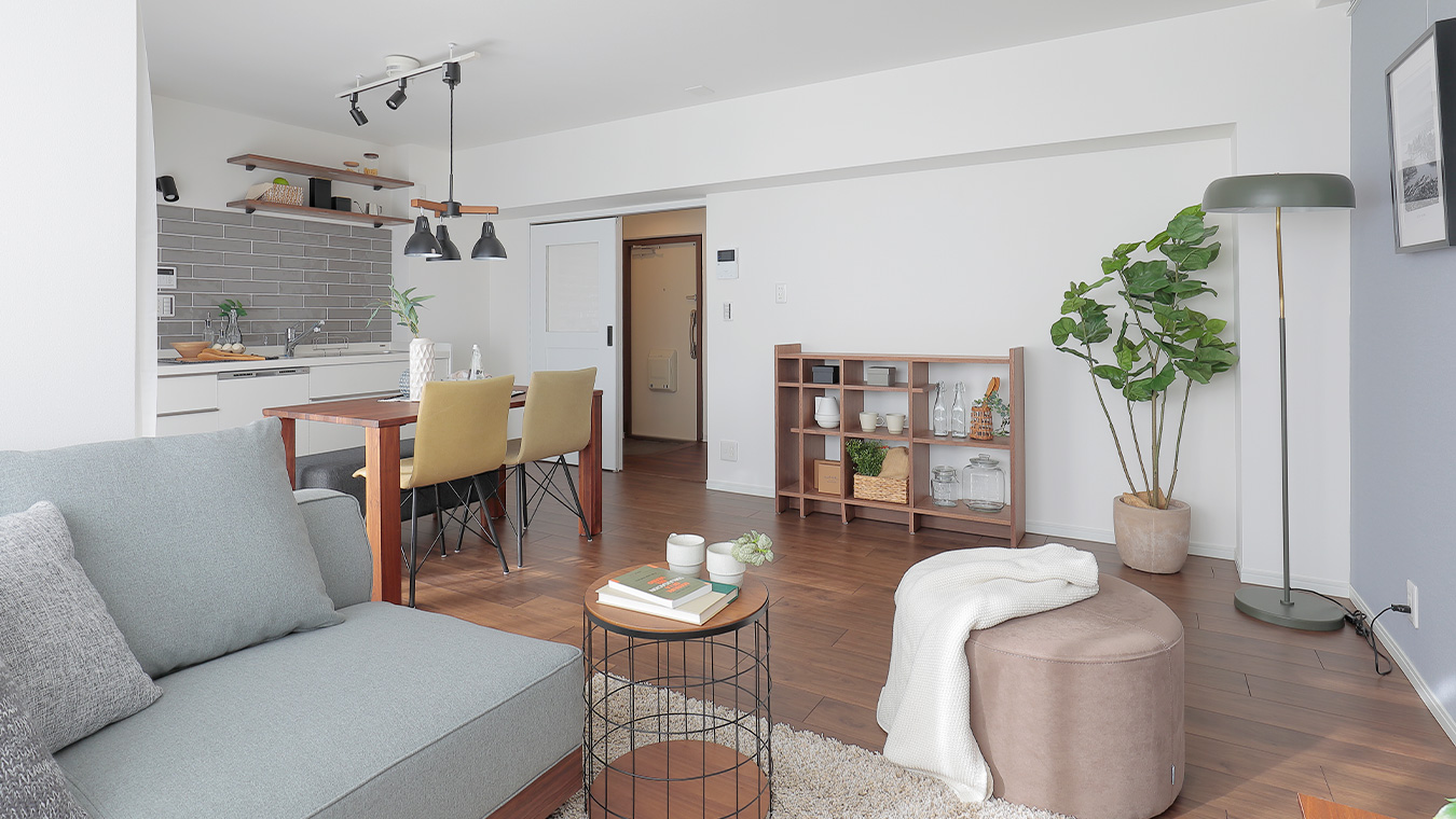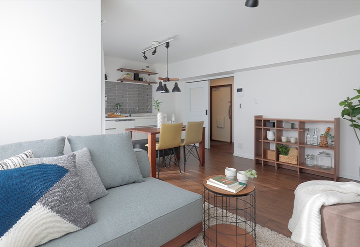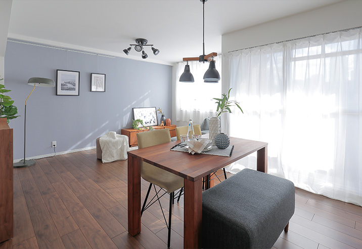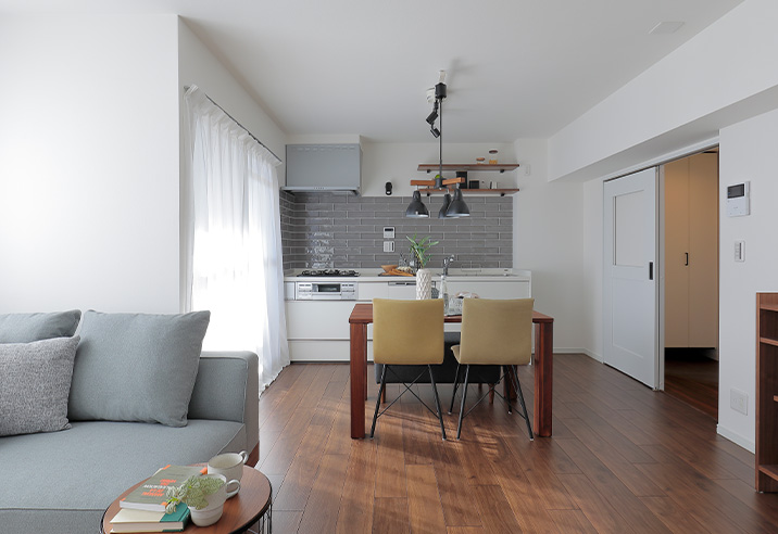 クローゼットも取り払い、リビングを拡張しました。大きな家具を置いてもゆとりのある広さです。