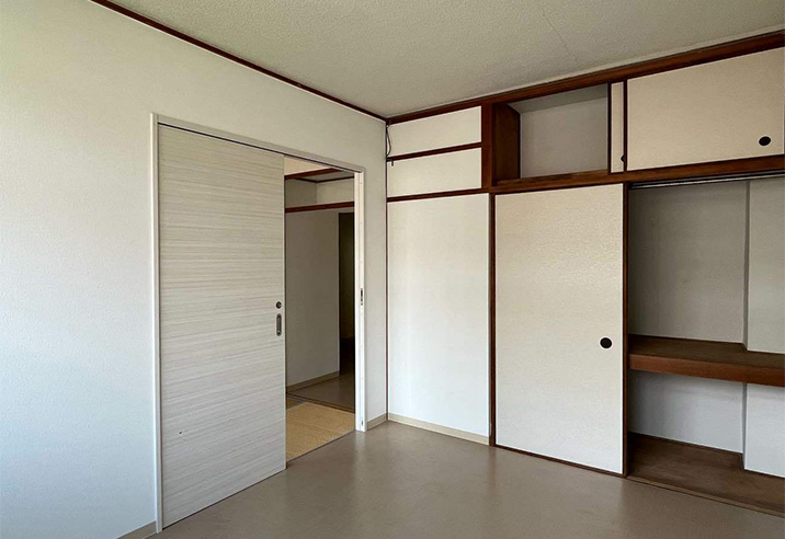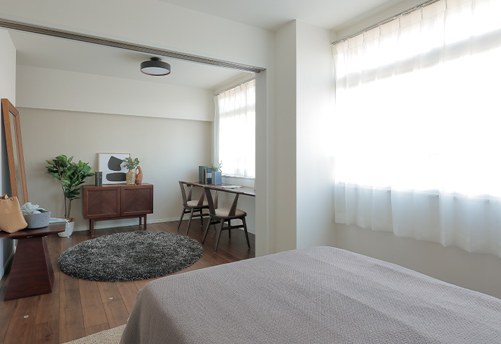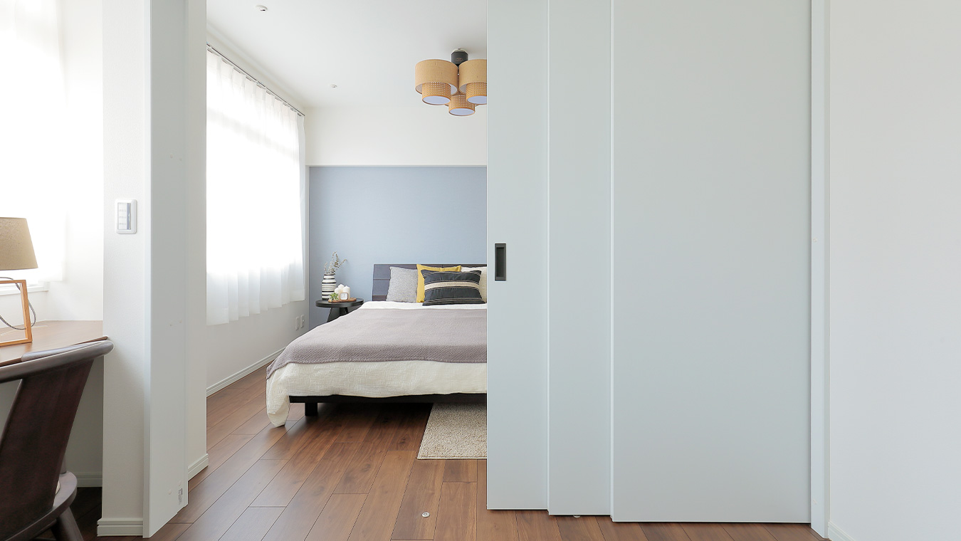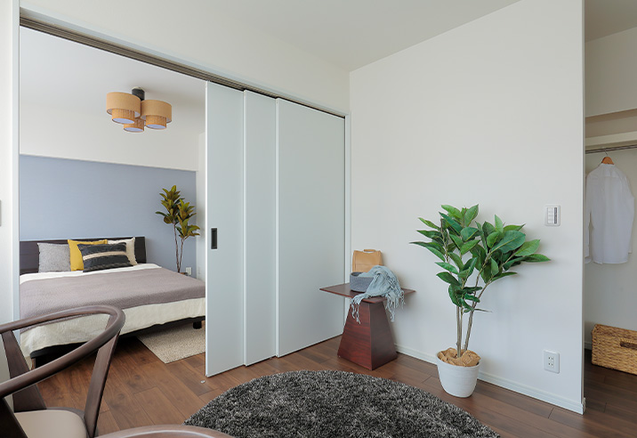 3枚引き戸を設置して、2部屋に仕切ることができる仕様です。以前の押し入れはウォークインクローゼットに作り替えました。
