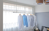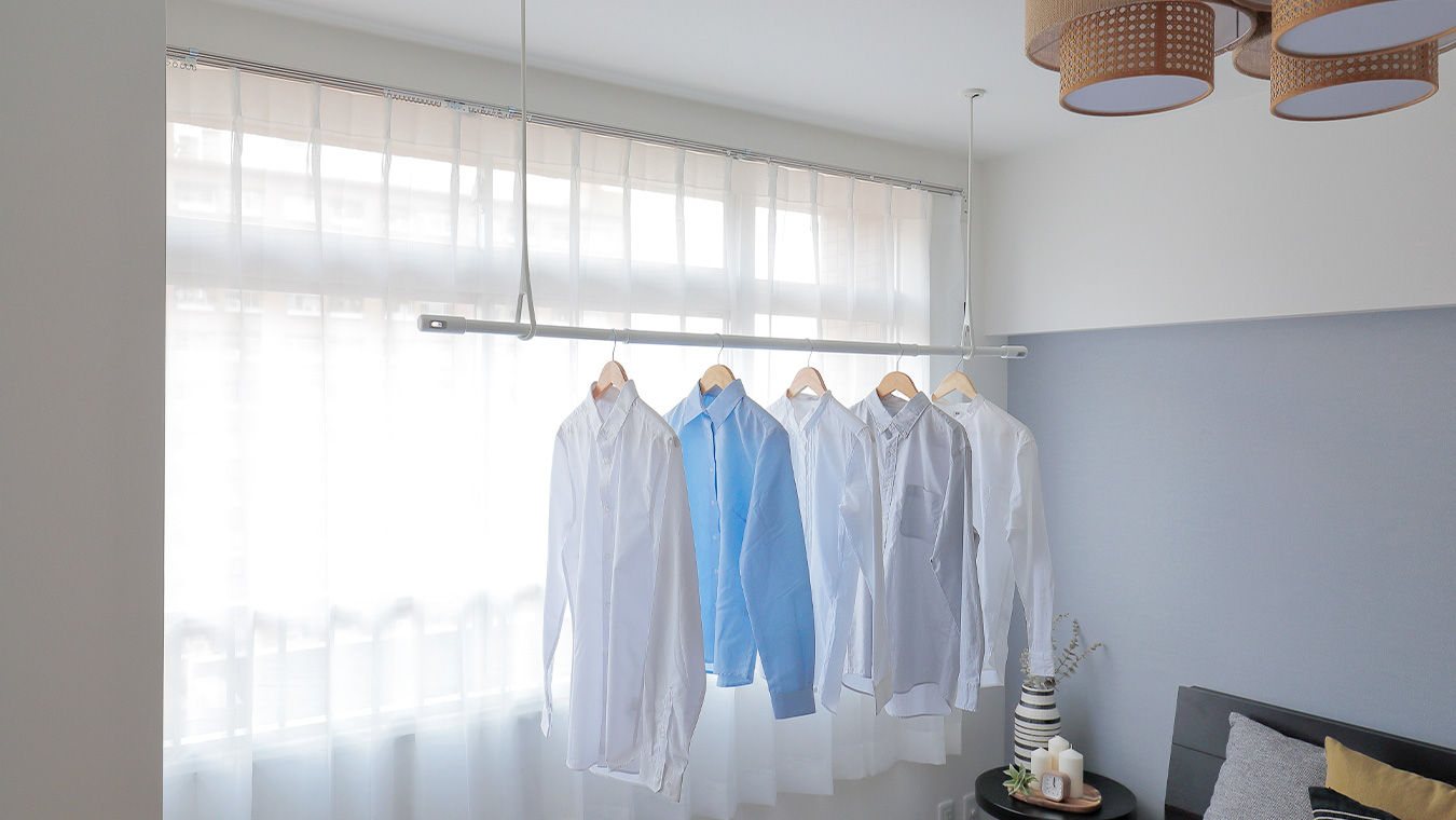 天井吊り型の室内物干しユニットを設置。