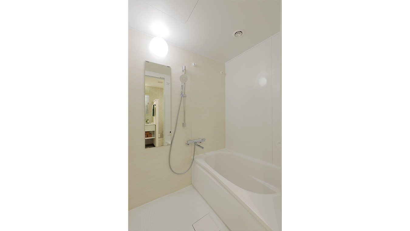 白系でまとめた水回りは清潔で明るい印象です。