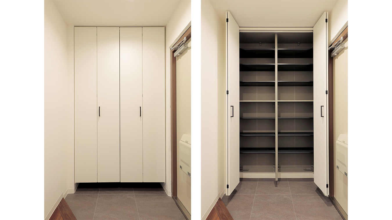 収納量の多いトールタイプのシューズボックスを設置しました。