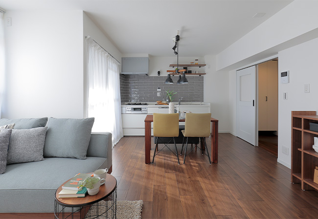 ブラウン系のフローリングを採用。ヴィンテージ感のある