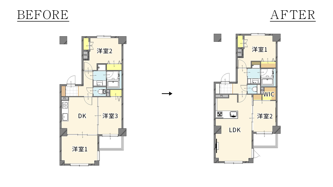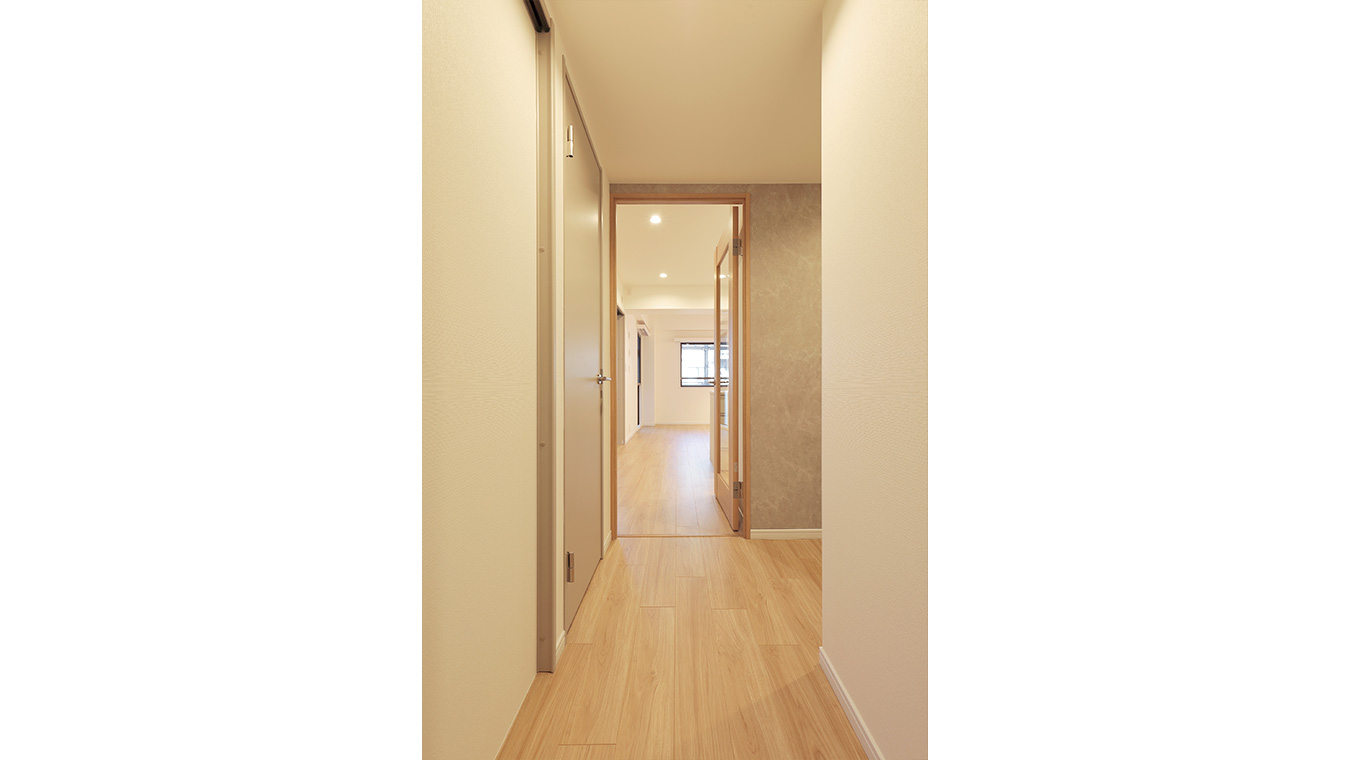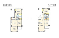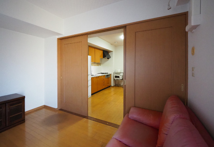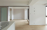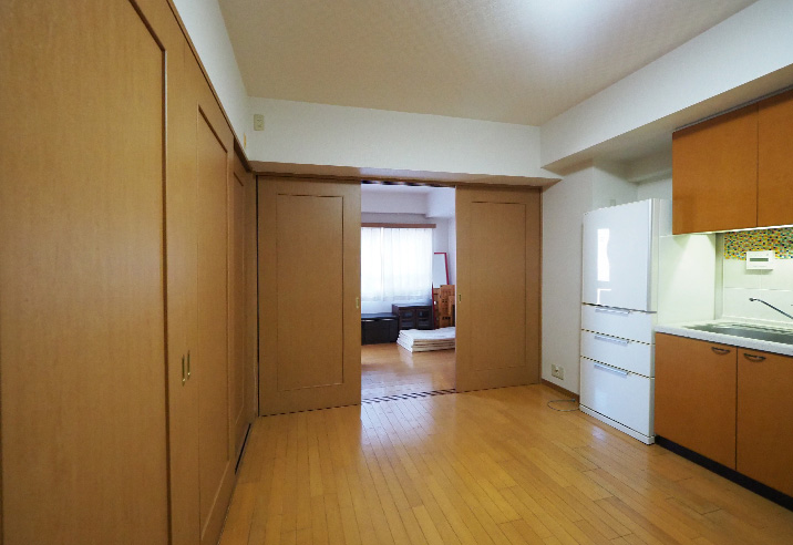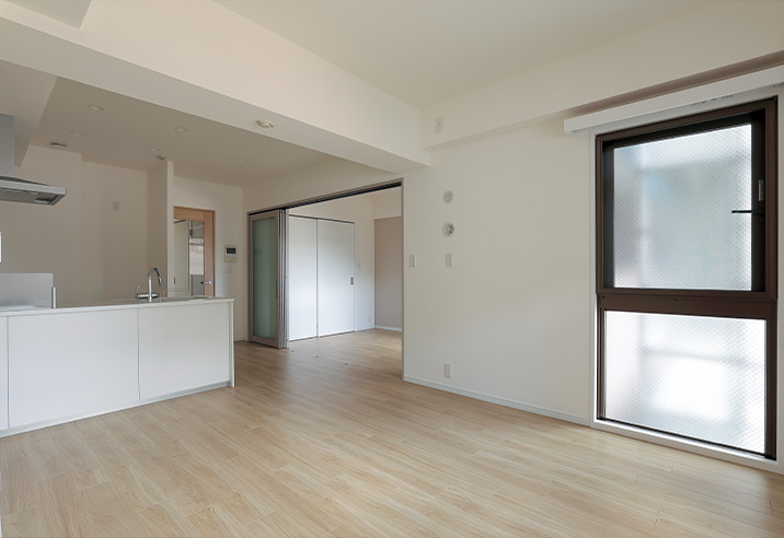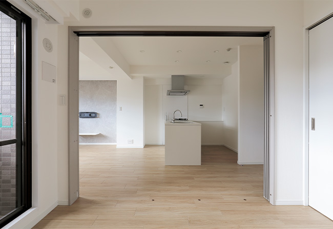 リビングと洋室を仕切っていた壁と引き戸を取り払ったため、見通しも良く圧迫感が軽減されました。