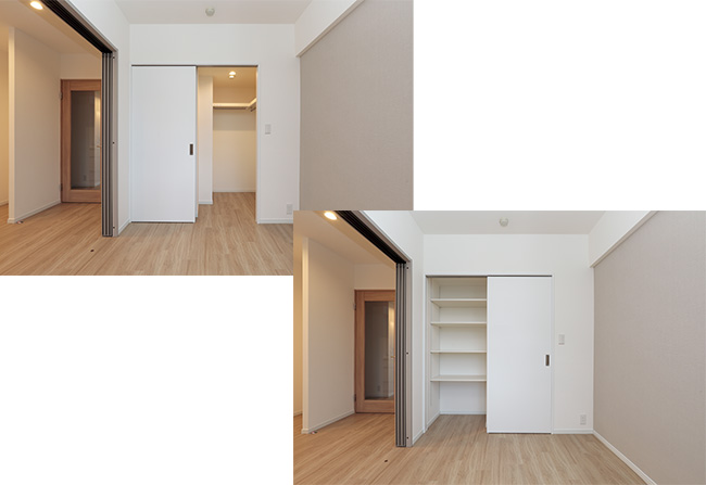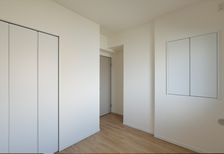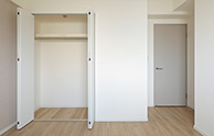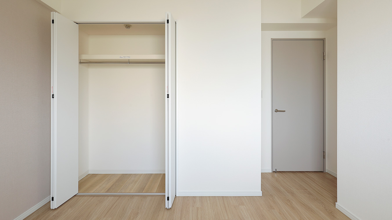 洋室の収納は、2つのクローゼット。白系で明るく圧迫感の少ない仕上がりです。