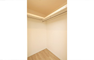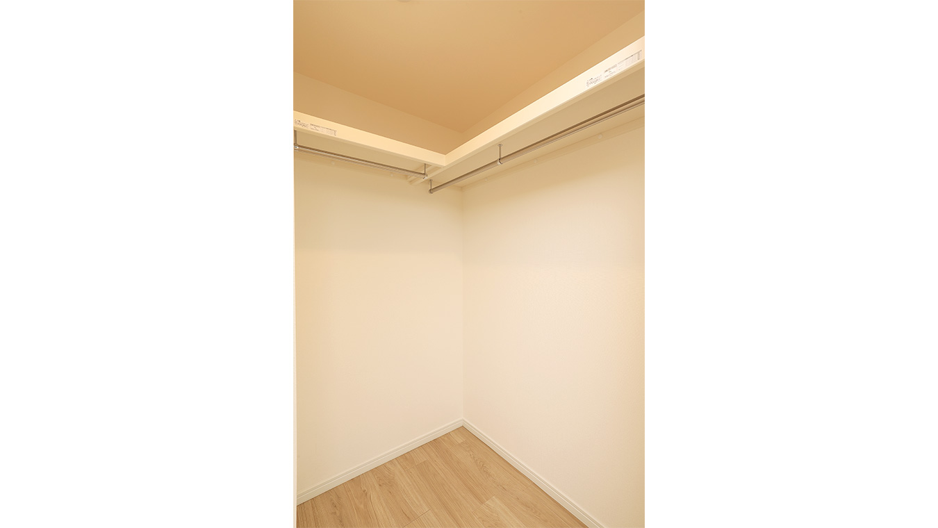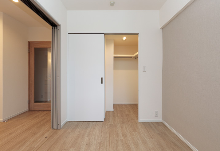 リビング横の洋室はクローゼットをウォークインクローゼットに作り替えました。季節ものの家電やスーツケースなどを収納いただけます。