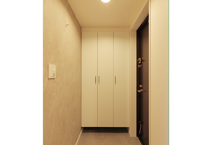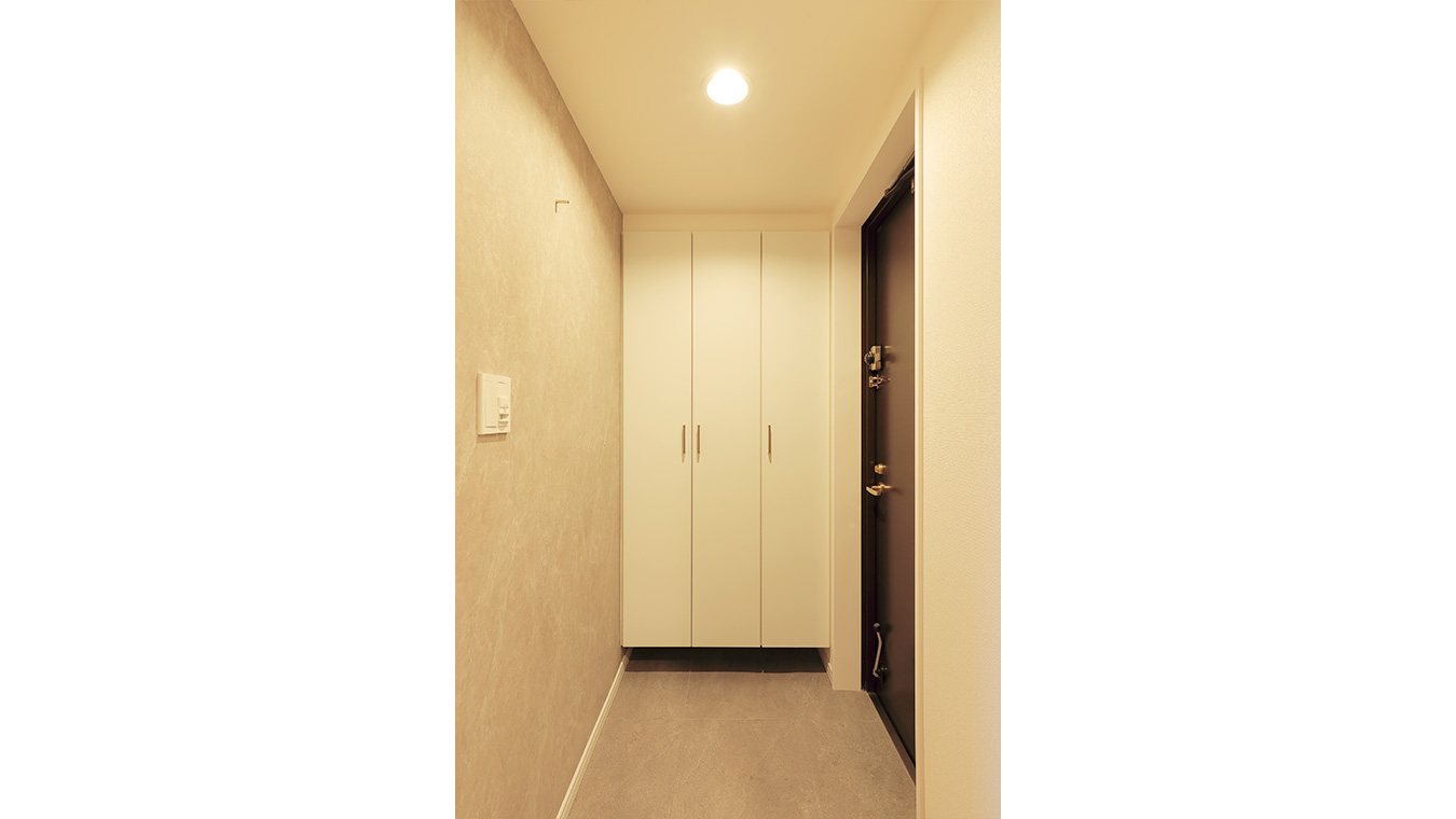 白系のトールサイズのシューズボックスを採用しました。光が反射するので以前より明るく感じます。