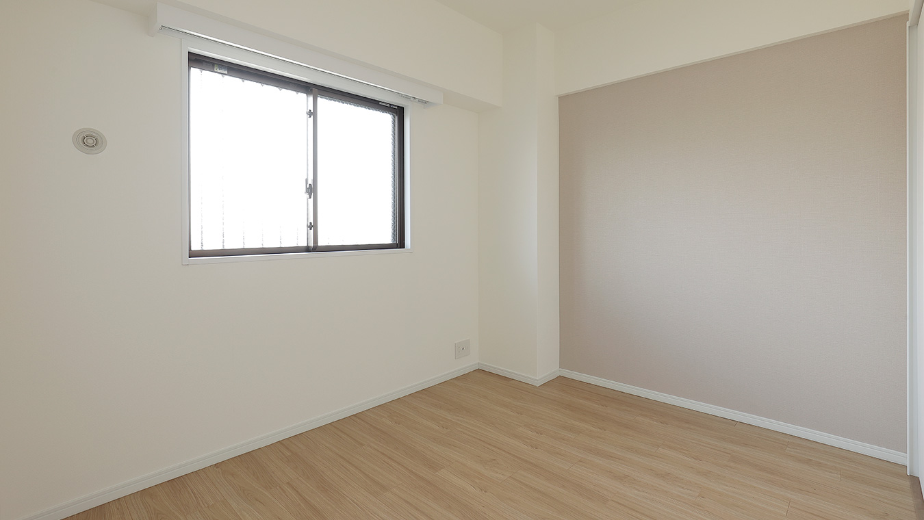 リビングに合わせて白系ですっきりとまとめたシンプルな洋室は、さまざまなインテリアコーディネートを楽しむことができます。