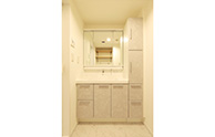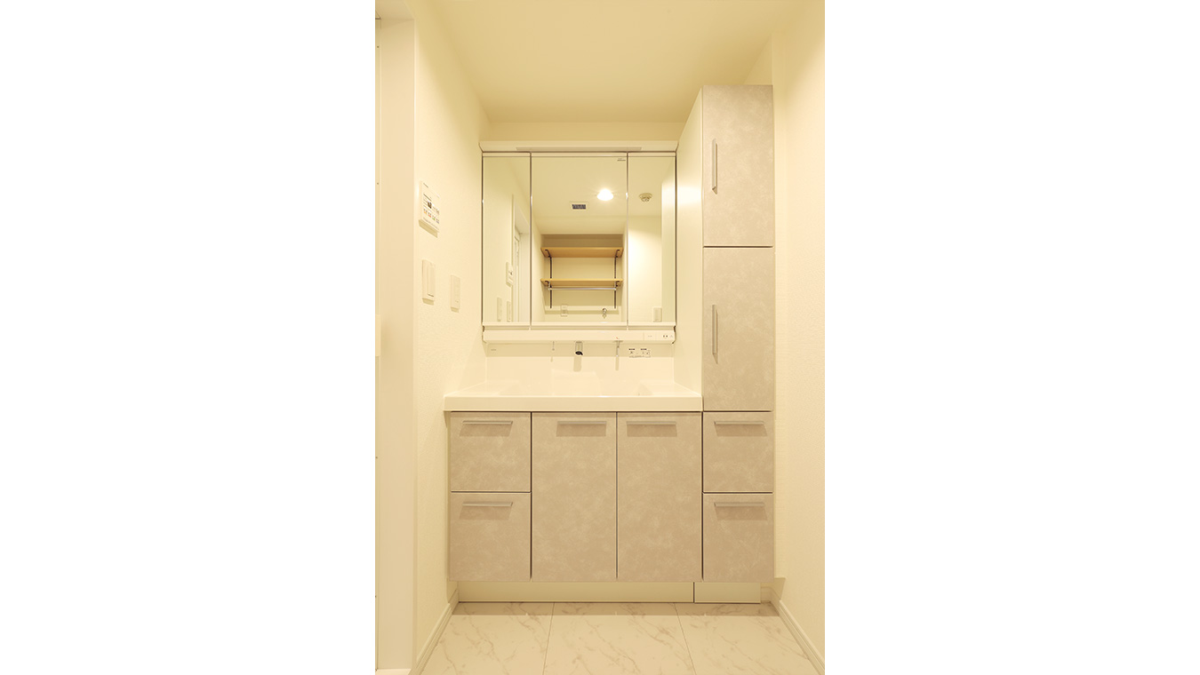 洗面台は収納の多いものをセレクトしました。