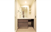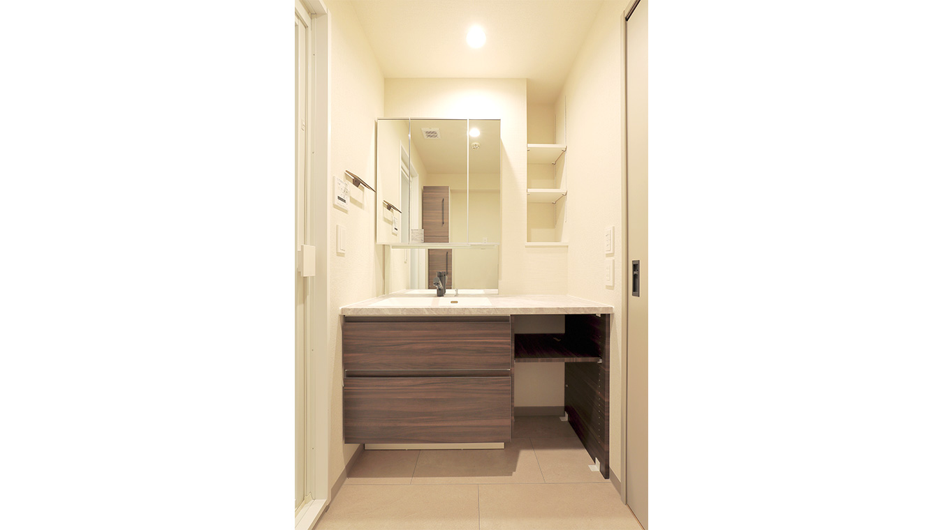 洗面台は足元に洗濯かごやいすを置くことができます。