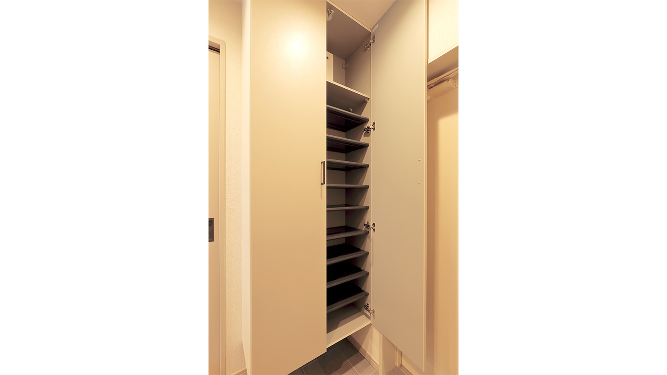 トールタイプのシューズボックスで収納量もたっぷり。