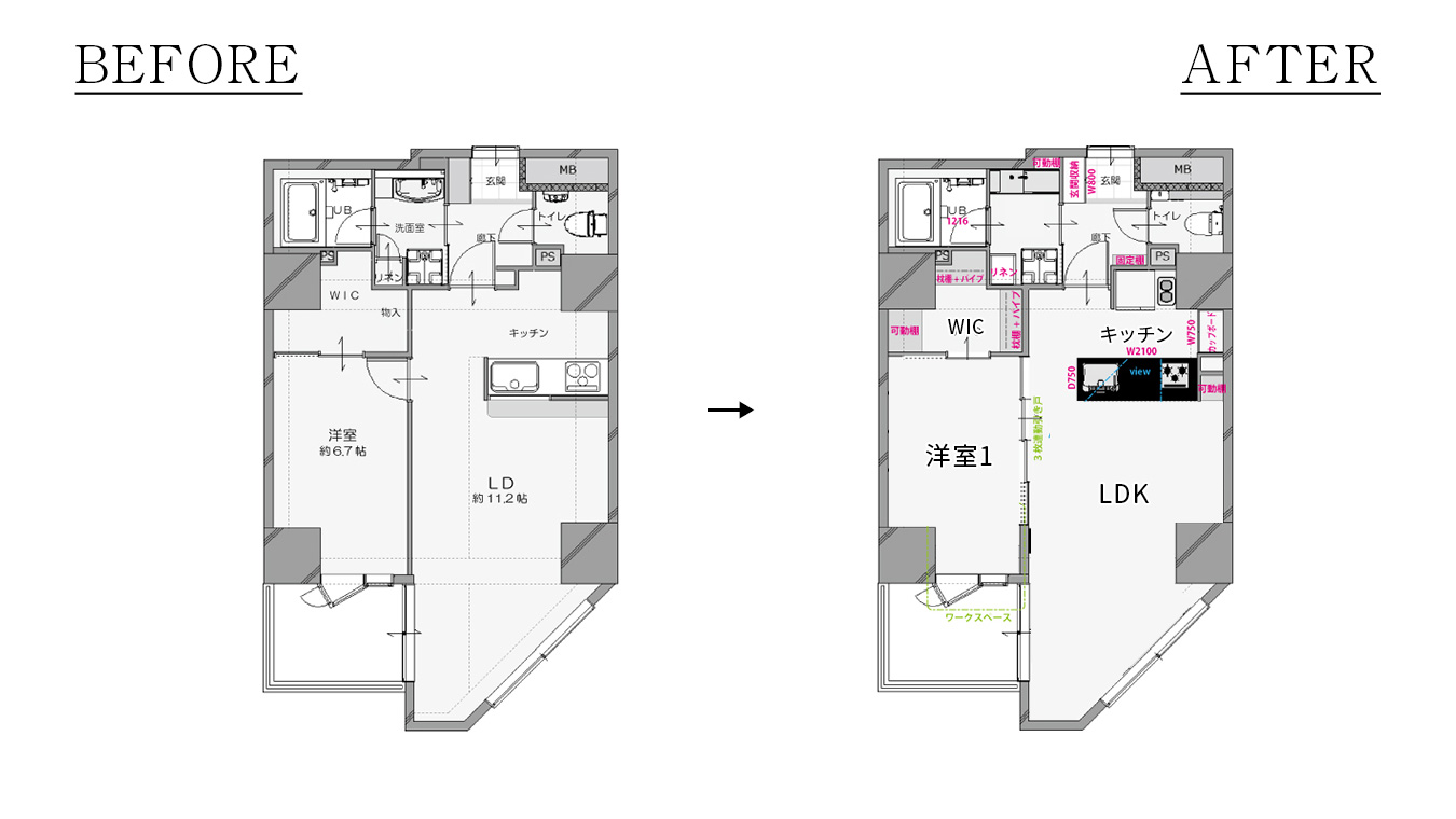 壁がなくなったことで圧迫感がなくなりました。