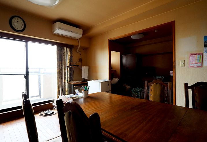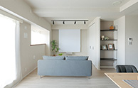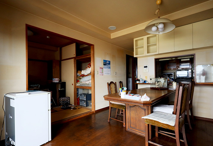 以前は和室だったお部屋は壁を取り払い、間口いっぱいのリビングに作り替えました。広くなったリビングは大きな家具を置いてもゆとりがあります。